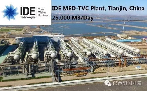 中國方面,IDE將其視作一個極其重要的市場,并積極開展市場拓展。2009年,IDE與天津國投津能發(fā)電有限公司合作,為國投北疆發(fā)電廠海水淡化項目一期建造日產(chǎn)20萬噸的低溫多效海水淡化裝置項目。2011年項目竣工投產(chǎn),是中國已建成最大的海水淡化項目,也是中國第一個向社會供水的大型海水淡化項目。2014年5月21日,中國副總理劉延?xùn)|參觀了IDE設(shè)在以色列海德拉的海水淡化廠,并肯定了中國和以色列在水處理技術(shù)領(lǐng)域的巨大合作潛力,這加速了IDE在中國的擴張步伐。