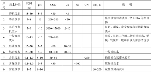 表1 印制電路板廢水水質水量分類表 (單位:mg/L,pH 除外)