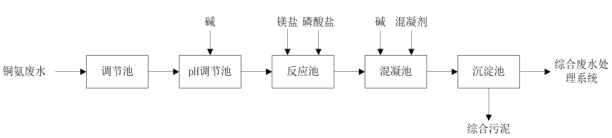 圖4 銅氨廢水磷酸銨鎂脫氨氮法的預處理工藝流程