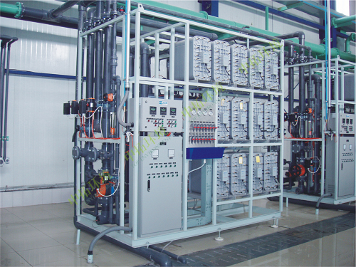 EDI(電去離子)是在電滲析器的隔膜之間裝填陰陽離子交換樹脂,將電滲析與離子交換有機(jī)的結(jié)合起來的一種水處理技術(shù)。