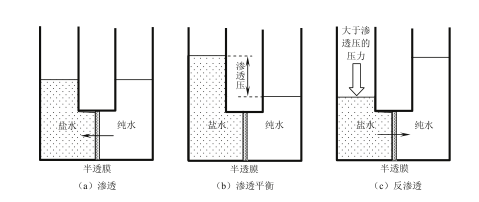 反滲透是一種以壓力差為推動(dòng)力,從溶液中分離出溶劑的膜分離操作。因?yàn)樗妥匀粷B透的方向相反,故稱反滲透。